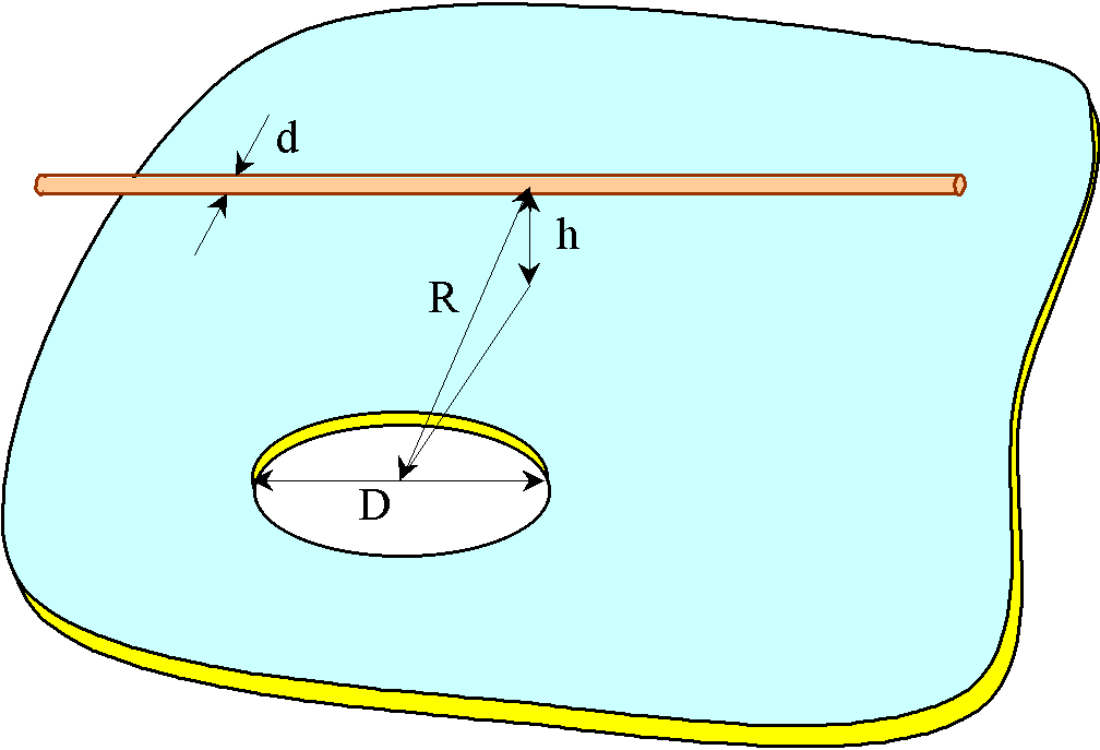 Ett cirkulärt hål enligt figuren kan enligt [1] modelleras som diskreta kretselement, en shuntkapacitans Ch och en serieinduktans Lh.